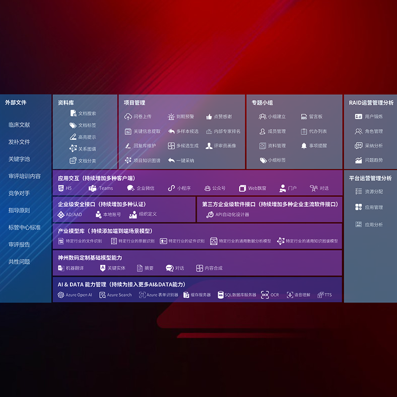 醫(yī)療器械產(chǎn)品上市前,要熟悉嚴(yán)格與繁復(fù)評(píng)審標(biāo)準(zhǔn),整理分析監(jiān)管機(jī)構(gòu)指導(dǎo)文件中的海量信息。企業(yè)急需一個(gè)智能化解決方案,提升知識(shí)管理效率,提高評(píng)審?fù)ㄟ^(guò)率,以提升其市場(chǎng)競(jìng)爭(zhēng)力。